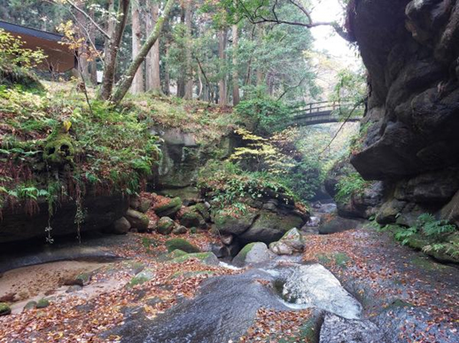 荒川剣龍峡は、新発田駅から車で20分ほど、月岡温泉から荒川川上流にあります。県立自然公園にも指定されています。この周辺は砂岩質のため岩が丸みを帯びて美しい景観です。周辺は散策も可能で全長6㎞の登山道となっています。登山道は起伏に富み、初級者から中級者まで楽しめるコースです。